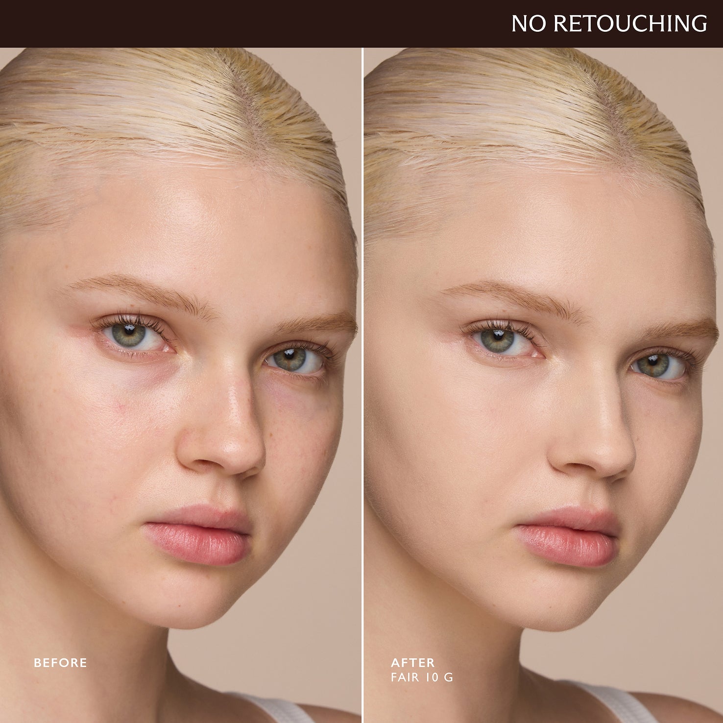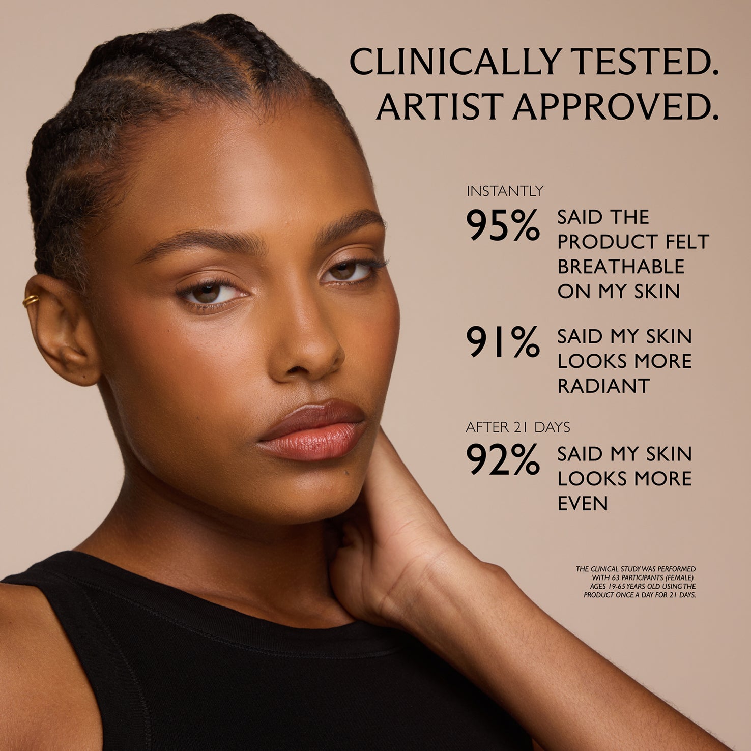 Glides on like a serum, melting into the skin for a smooth, second-skin finish. Apply a thin layer for a natural look or build in layers for fuller coverage. Skin stays hydrated all day. Never cakey or drying.