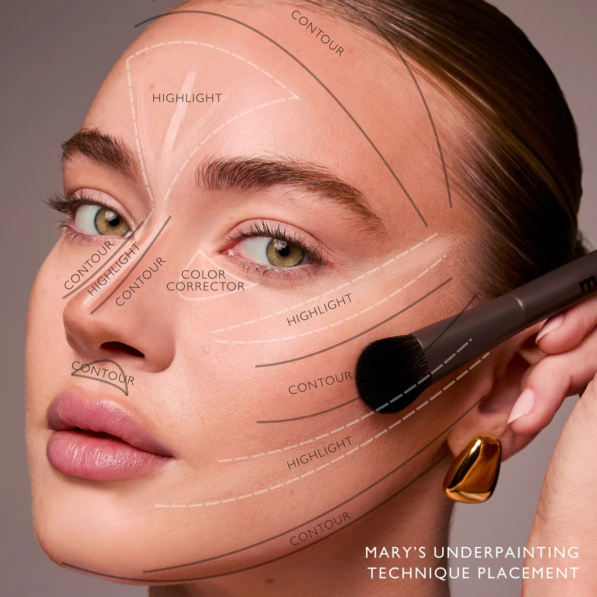 Inspired by Mary Phillips’ Underpainting Technique, this palette corrects, contours, and highlights to sculpt and define natural features.