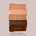 Add foundation to blend. Works best when paired with a sheer-to-medium coverage foundation or tinted moisturizer.